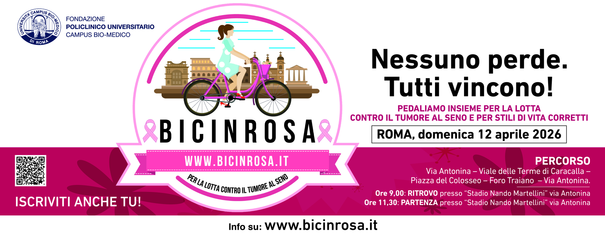 Torna Bicinrosa, la pedalata solidale per le vie del centro storico di Roma (partenza e arrivo presso lo Stadio Nando Martellini, in via Antonina, nei pressi delle Terme di Caracalla) che quest’anno festeggia la sua 9ª edizione. Appuntamento domenica 12 aprile 2026, a partire dalle ore 10:00, con la Breast Unit della Fondazione Policlinico Universitario Campus Bio-Medico protagonista di una giornata all’insegna dei valori dello sport, della speranza e del senso di comunità.